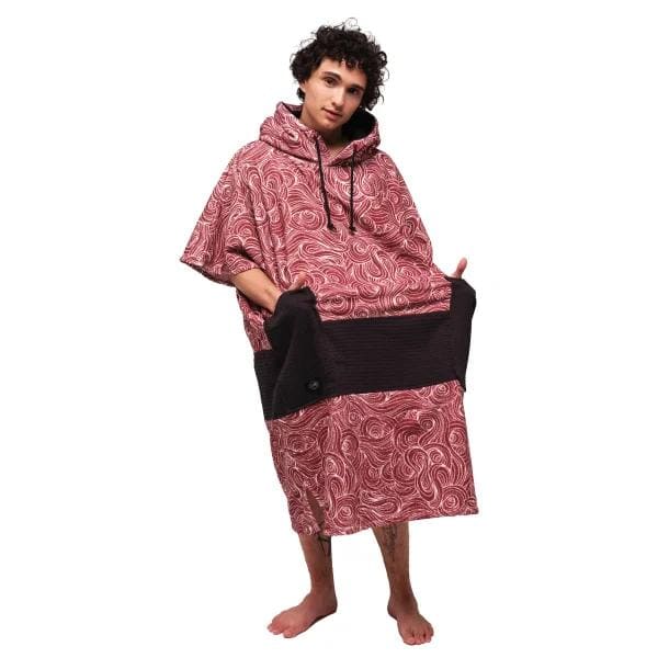 מגבת פונצ’ו חברת All In ארוך עשוי ממגבת עבה ומחממת 100% כותנה ללבישה אחרי גלישה והחלפת בגדים בנוחות